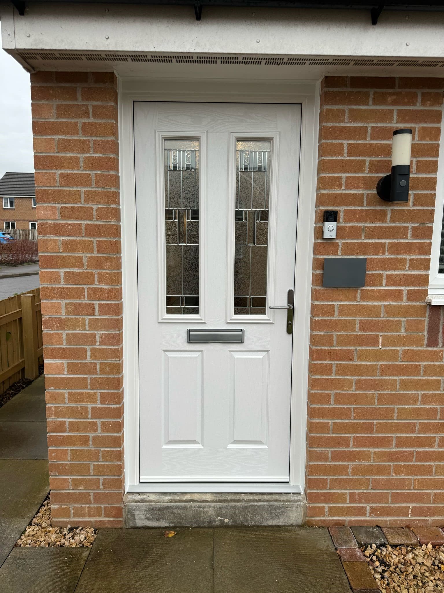 The new composite door not only gives the home a fresh, modern appearance but also adds enhanced security, durability, and energy efficiency. Paired with crisp white UPVC windows, this upgrade delivers a clean finish that’s built to last.